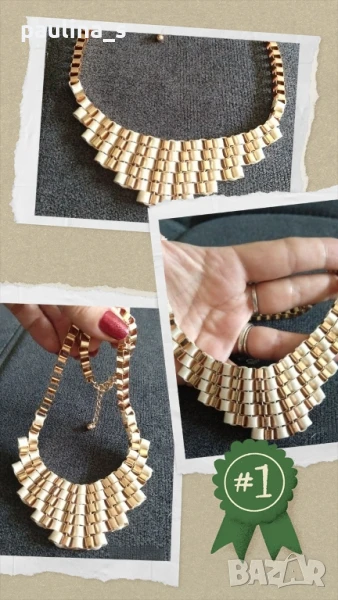 6️⃣. Колаж / Разкошно масивно колие, тип чокър с листа от дантелен филигран. Цената е крайна 14,99лв / 7,5 евро. Приковавава погледите, може да се влюбиш в него. Дължина 40см без удължителя.