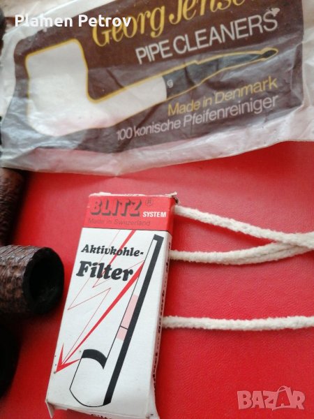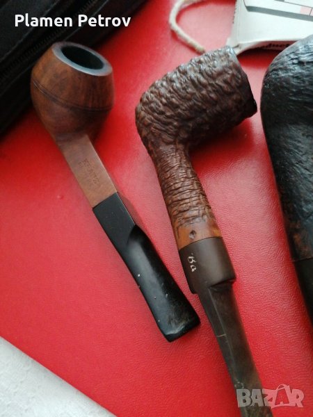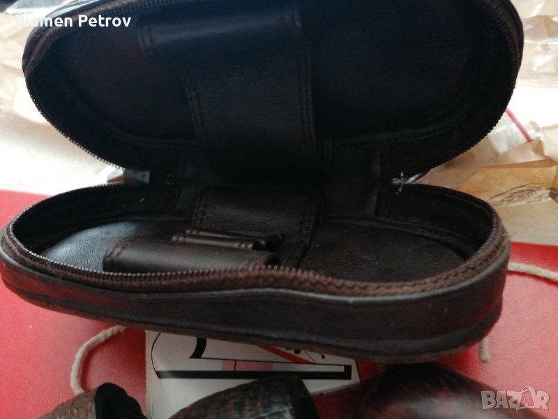 Четири броя стари лули от средиземноморски бриард френски с кожен калъф и филтри и аксесоари за почистване марките са KRANZ BRUYERE /SAINT-CLAUDE MEERSGHAUM Vuillard /ButnChoguinFRANCE/BRIARDLUCCA 860 RUY DE FRANTIE /
