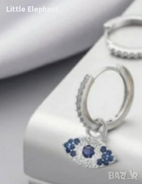Сребърни обеци с допълнителна висяща част,дяволско око/нови → Обява 37477502