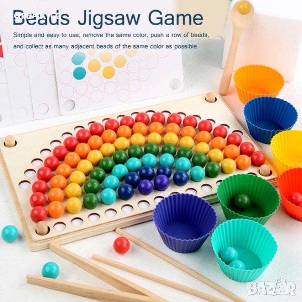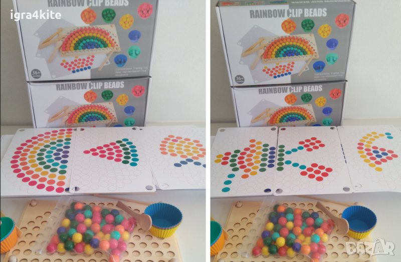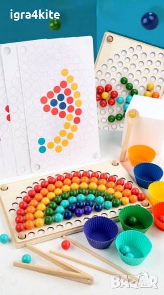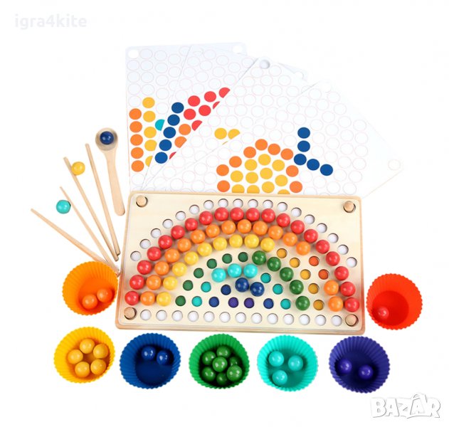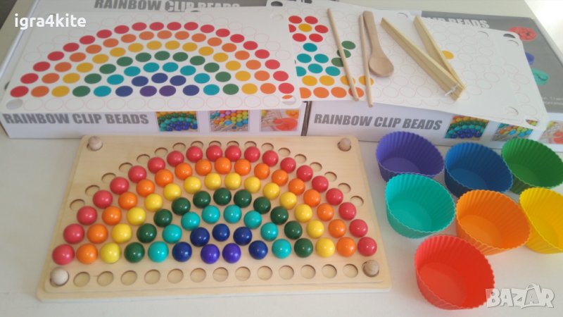 Rainbow wooden clip beads мултифункционална игра с мъфини, топчета и шаблони от дърво