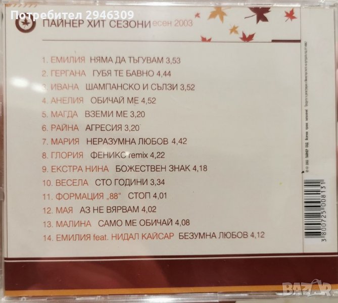 Пайнер Хит Сезони - Есен 2003, снимка 1 - CD дискове - 37479585 Пайнер Хит Сезони - Есен 2003, снимка 2 - CD дискове - 37479585 1/2