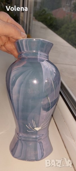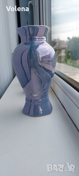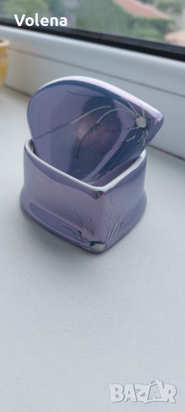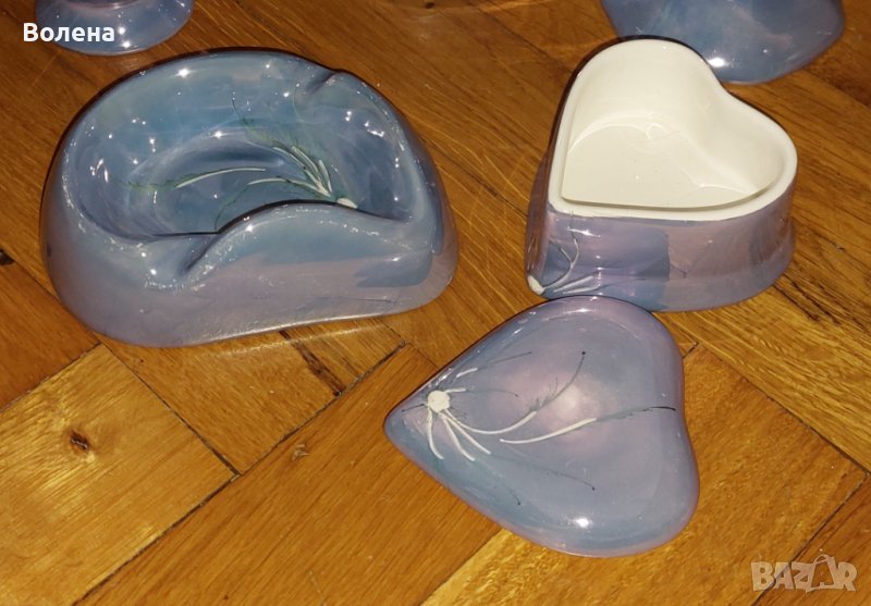 Порцеланов ет от 5 части в синьо-лилаво.Включва голяма и малка ваза,свещник,пепелник и за бижута.