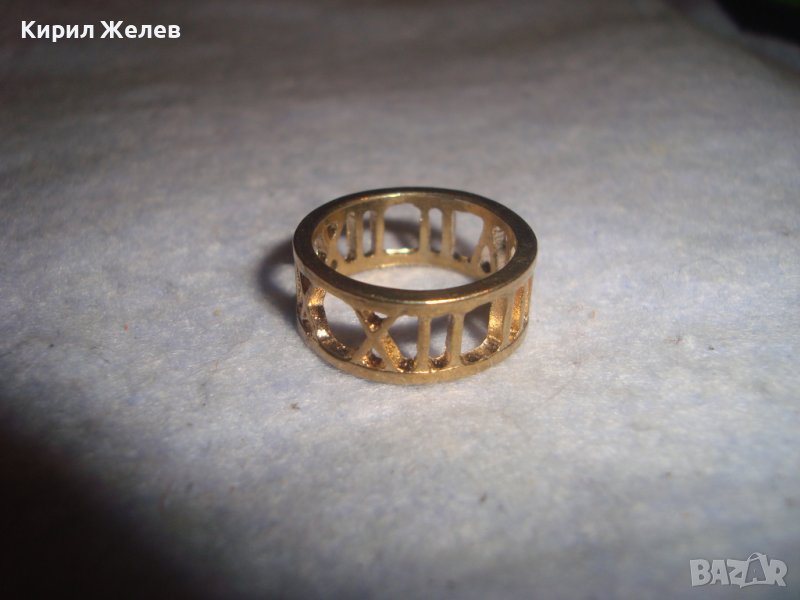 ПОЗЛАТЕН РЕТРО ВИНТИДЖ АРТ ПРЪСТЕН АЖУРЕН РИМСКИ ЦИФРИ ТИП ХАЛКА 27643