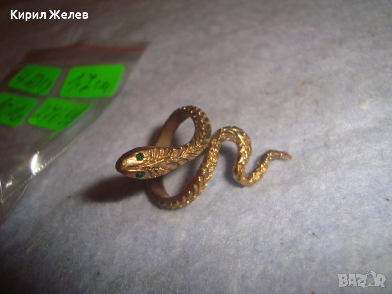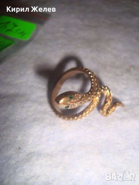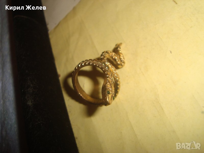 ПОЗЛАТЕН ЗМИЕВИДЕН ФИГУРАЛЕН АРТ НЕО ГОТИК СТИЛ ПРЪСТЕН с КРИСТАЛНИ ОЧИ 27699