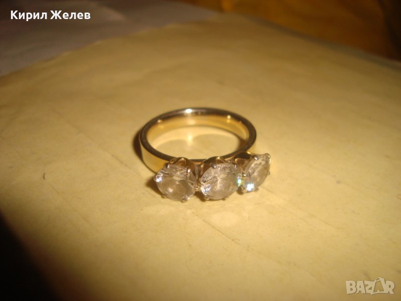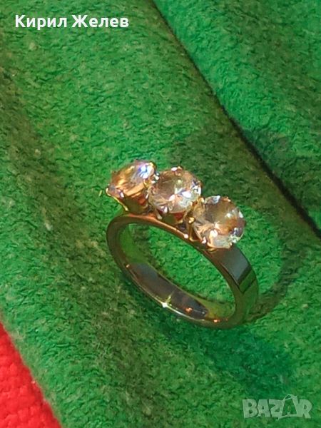 ПОЗЛАТЕН СКЪПОЦЕНЕН МОДЕН АРТ ПРЪСТЕН БЛАГОРОДНА НЕРЪЖДАЕМА СТОМАНА с ПРЕКРАСНИ ЦИРКОНИ 20839