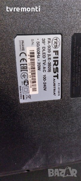 Main board HK-T.RT2957P61 for 39 inc DISPLAY FIRST FA-939(LE-3929) борда е гарантирано работещ Демонтиран от телевизор FIRST MODEL FA-939(LE-32929) със счупен дисплей CX390DLEDM PANEL T390XVN01.0 тествана от нашия техниктествана от нашия техник