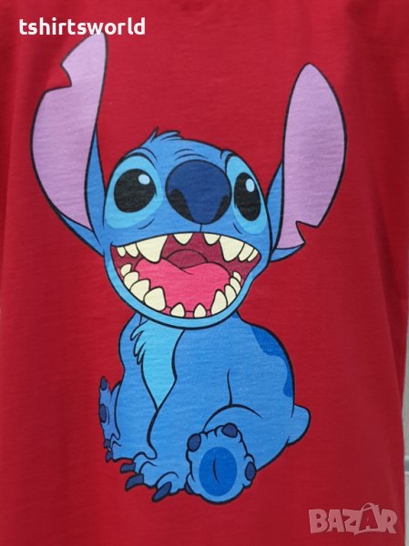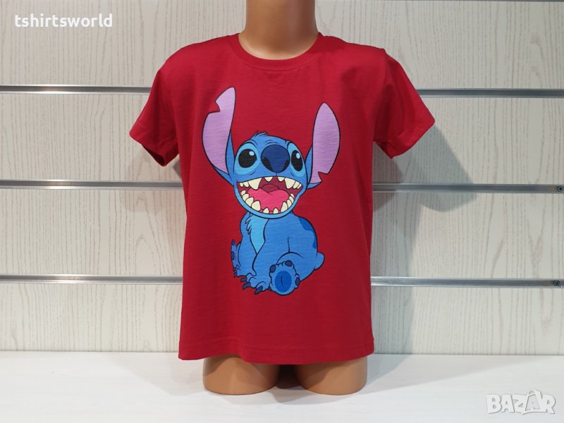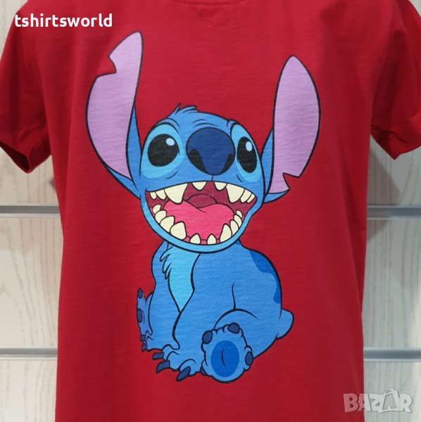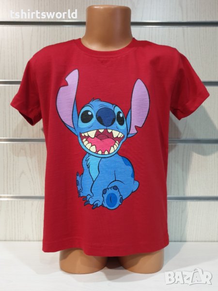 Страхотна нова детска тениска в червен цвят с дигитален печат на героя Стич от Lilo and Stitch Тениската е изработена в България под марката PRINTEX от висококачествен 100% пениран памук, който запазва цялостта на материята и наситеността на цветовете дълго време. С удобна кройка, тениската е свободна и позволява максимален комфорт при носене. Професионално изработен висококачествен дигитален печат, устойчив на пране с години. Тениската може да се пере при температура до 40 градуса. Спокойно можем да гарантираме за качеството на изработката и ярките цветове на дизайна.