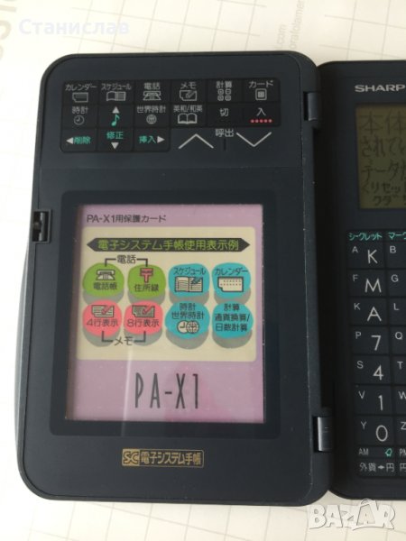 SHARP PA-X1 електронен калкулатор бележник органайзер, японско производство, със сменяеми мемори карти, бележника е в добро визуално състояние без липси и изтрити бутони, японски език