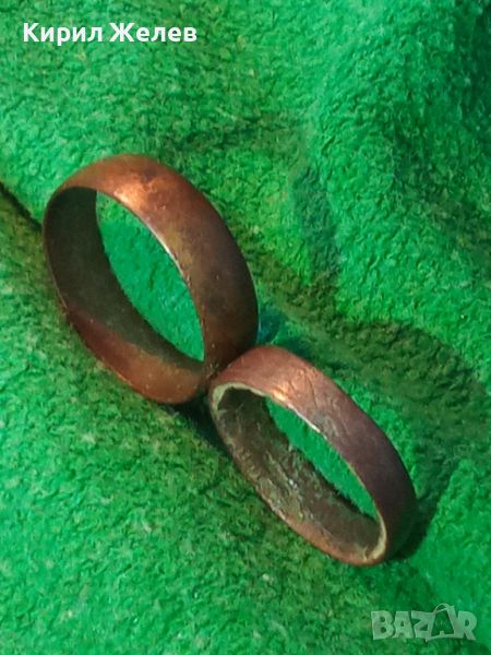 ДВЕ СТАРИ МЕДНИ РЕТРО СТИЛ ХАЛКИ ПРЪСТЕНИ РЪЧНА АРТ ИЗРАБОТКА 28592