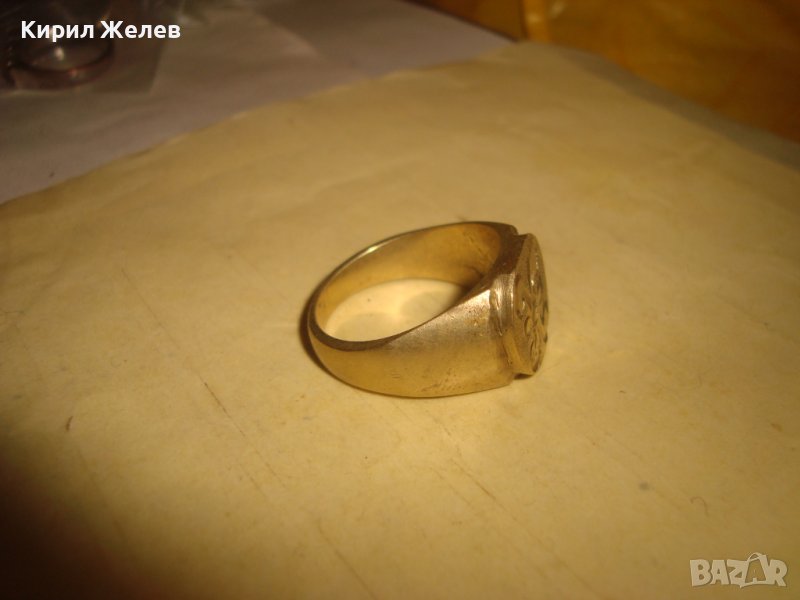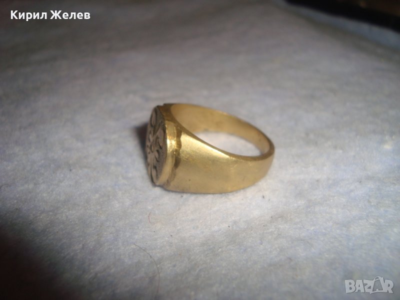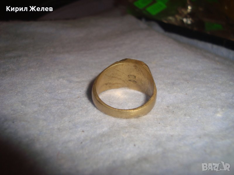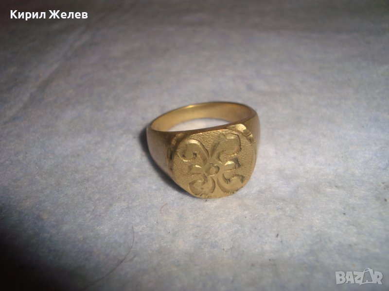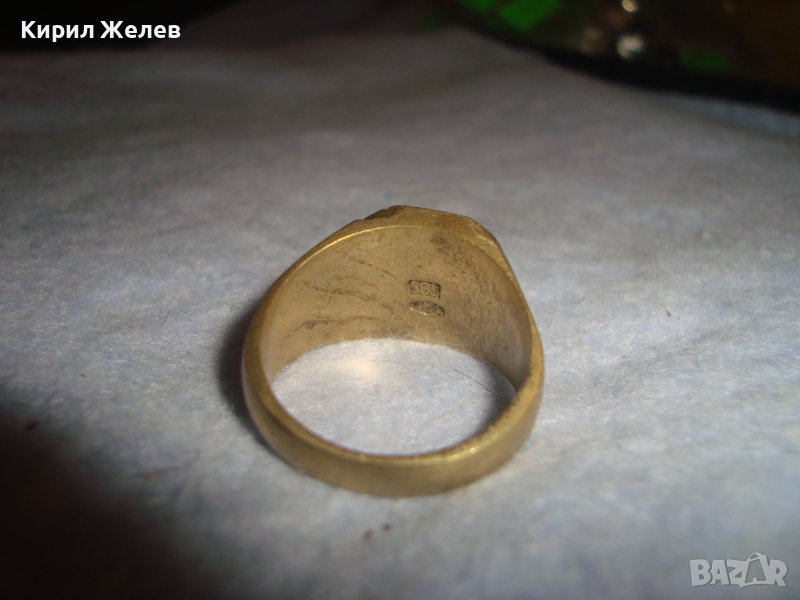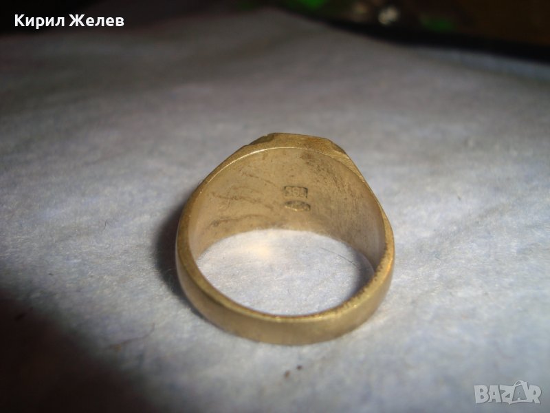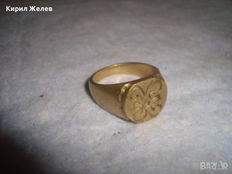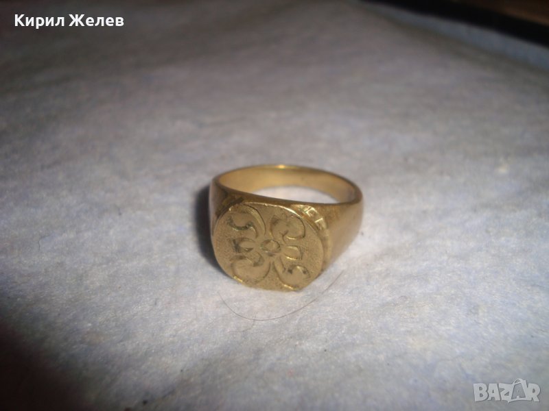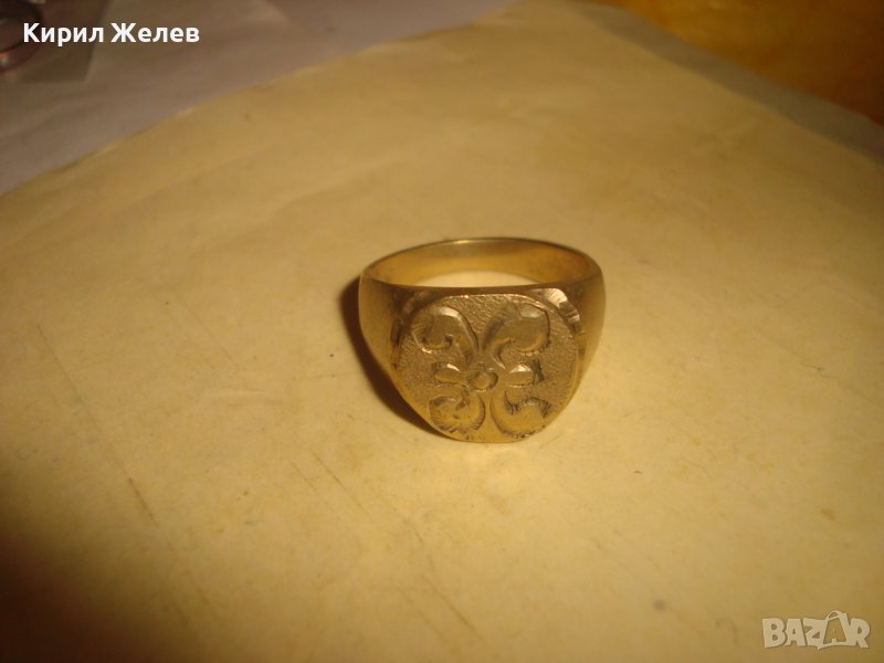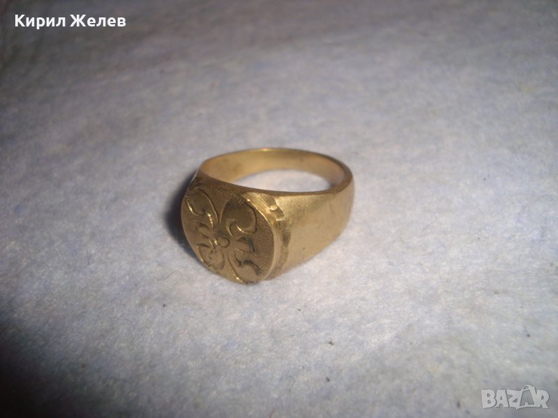СТАР РЕТРО АРТ ДЕКО РЪЧНО ОРНАМЕНТИРАН ПОЗЛАТЕН ПРЪСТЕН от НЕРЪЖДАЕМА СТОМАНА с ПЕЧАТИ 585 14К 27573