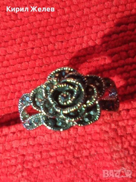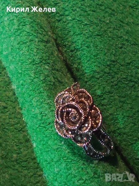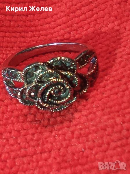 ФЛОРАЛЕН ПОСРЕБРЕН МАРКАЗИТЕН АР НУВО СТИЛ ПРЪСТЕН - РОЗА 17512