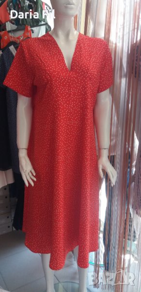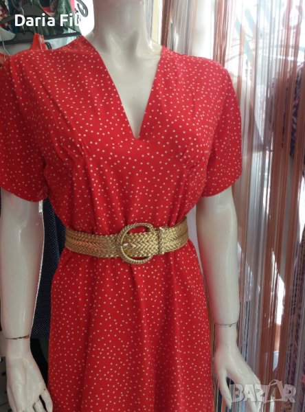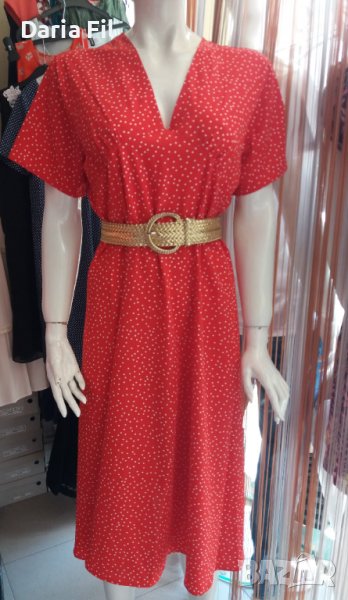 Червена рокля на ситни бели точици с остро деколте → Обява 37500205