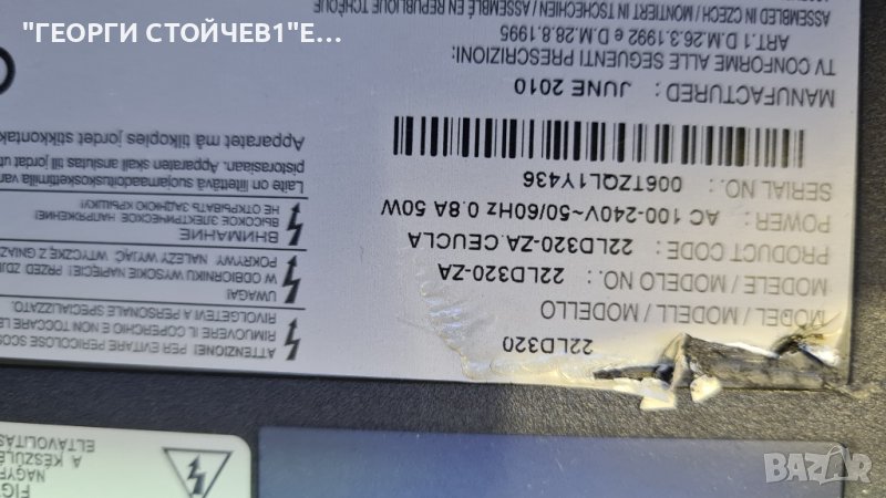 22LD320  СЪС СЧУПЕНА МАТРИЦА, снимка 1 - Части и Платки - 37500881 22LD320  СЪС СЧУПЕНА МАТРИЦА, снимка 2 - Части и Платки - 37500881 22LD320  СЪС СЧУПЕНА МАТРИЦА, снимка 3 - Части и Платки - 37500881 22LD320  СЪС СЧУПЕНА МАТРИЦА, снимка 4 - Части и Платки - 37500881 22LD320  СЪС СЧУПЕНА МАТРИЦА, снимка 5 - Части и Платки - 37500881 22LD320  СЪС СЧУПЕНА МАТРИЦА, снимка 6 - Части и Платки - 37500881 22LD320  СЪС СЧУПЕНА МАТРИЦА, снимка 7 - Части и Платки - 37500881 1/7