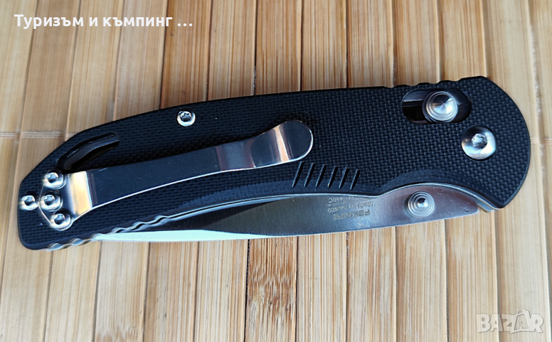 Освен това, ножът може да бъде допълнително закрепен с ремък, за който има отвор на дръжката.. Щипката за носене на колана е стоманена.