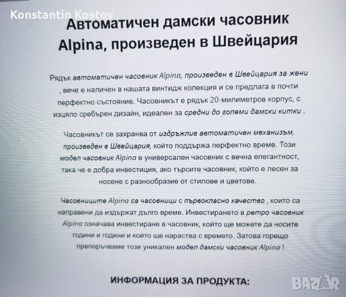 Дамски часовник ALPINA AUTOMATIC, снимка 1 - Дамски - 37506009 Дамски часовник ALPINA AUTOMATIC, снимка 2 - Дамски - 37506009 Дамски часовник ALPINA AUTOMATIC, снимка 3 - Дамски - 37506009 Дамски часовник ALPINA AUTOMATIC, снимка 4 - Дамски - 37506009 Дамски часовник ALPINA AUTOMATIC, снимка 5 - Дамски - 37506009 Дамски часовник ALPINA AUTOMATIC, снимка 6 - Дамски - 37506009 1/6
