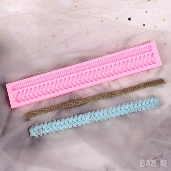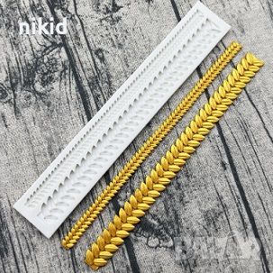 дълъг кант житен клас овес лаврови листа силиконов молд форма декорация торта фондан шоколад дантела → Обява 37506644