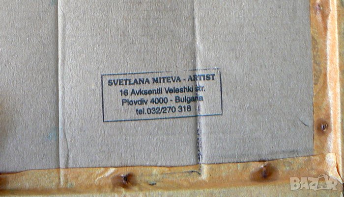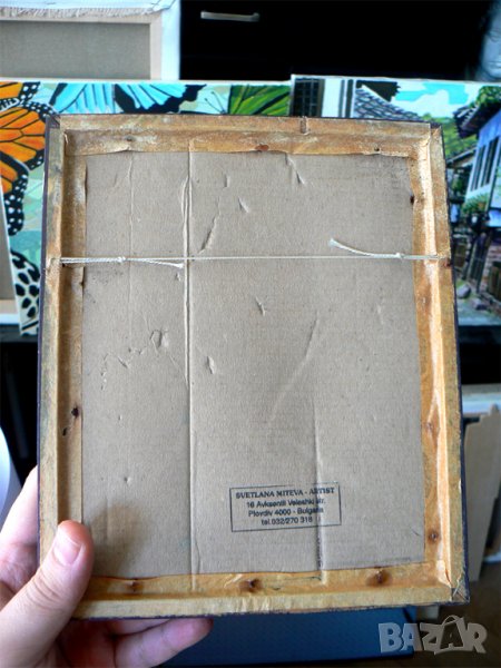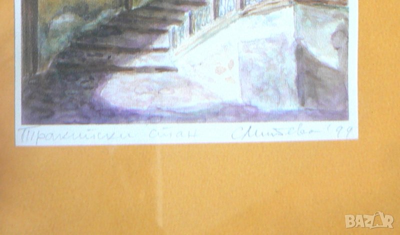 датирана. Светлана Митева. Рамката е от дърво. Репродукцията е в добро състояние за годините си. На живо изглежда по-добре. Височина 21 см. Ширина 18 см. Това са размерите с рамката .