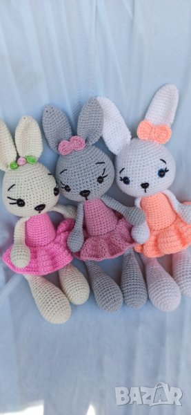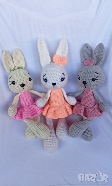 Плетени зайчета на една кука с бебешка прежда , силиконов пълнеж, безопасни очички и нослета на винт.