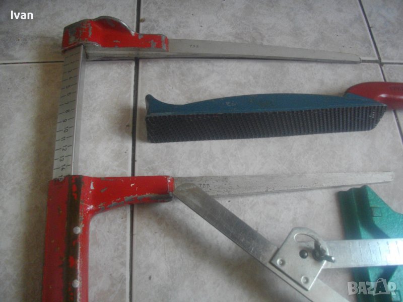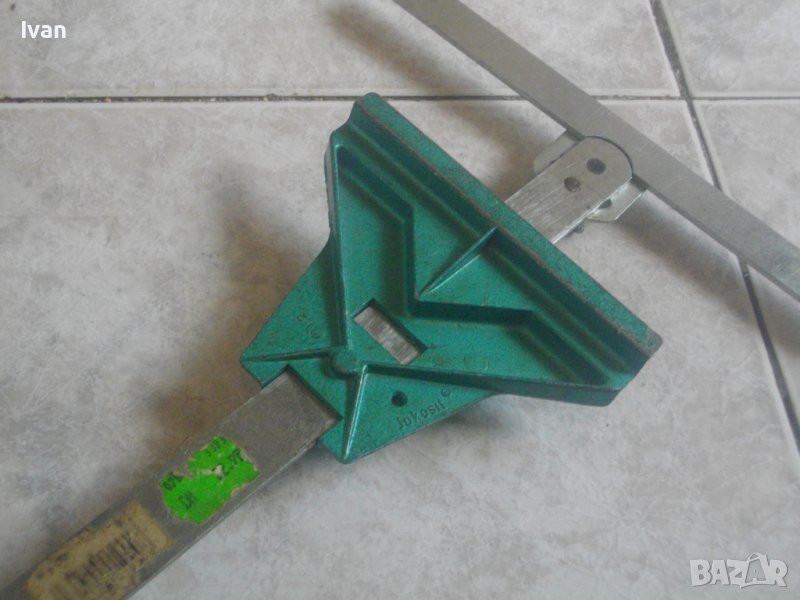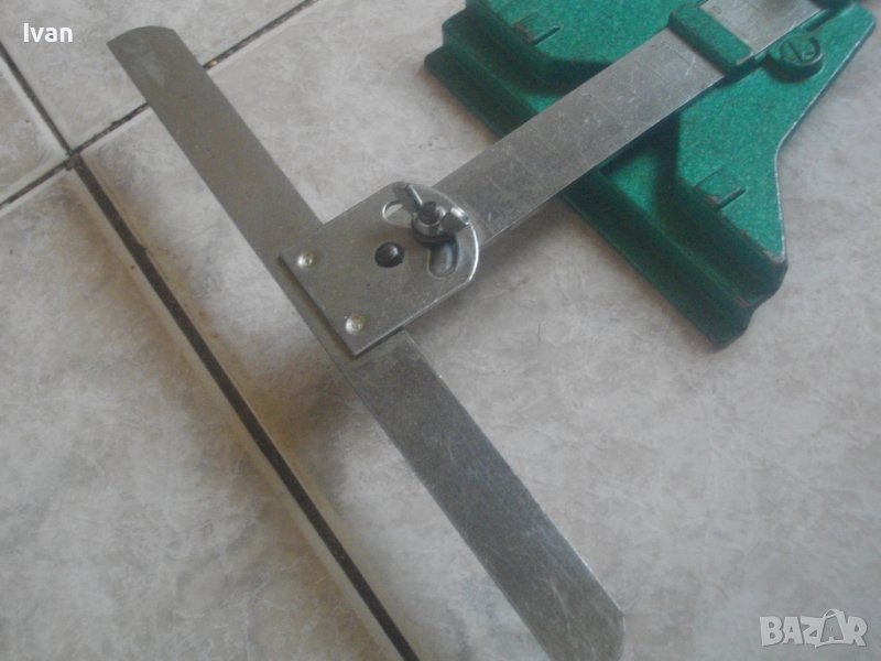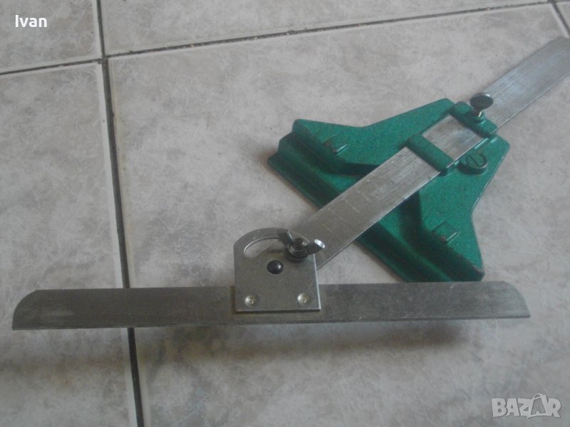 ОПИСАНИЕ на нов немски паралел - ограничител ширина за различни машини - цена 49 лв.Съвсем нов настолен ъгъл-ограничител за ширина при рязане и за рязане под ъгъл-наклон,за машини тип настолни циркуляри,стационарни циркуляри,ел.машини за рязане на плочки и машини с работен плот.Приспособлението е съвсем ново,неизползвано,с фабричните етикети и стикери по него.Оригинално немско производство. Маркирана немска цена на стикера-22,95 марки.Марка на линеала-ъгъл-Jokosit.Линеала е метален изцяло,разграфен до 20 см,като отзад остават още няколко сантиметра.Отпред линеала е с ограничител за ширина при рязане,с наклон,регулируем,посредством крилчата гайка.Линеала и ъгъла са захванати на масивна метална основа,която се прикрепва към плот на машина,с която се работи.Цялостна дължина на приспособлението-30см,ширина при основата-14см.Ширина на ограничителя-25см.