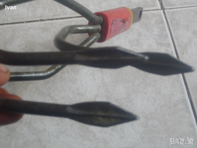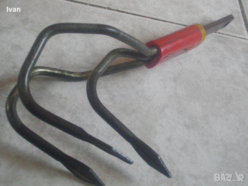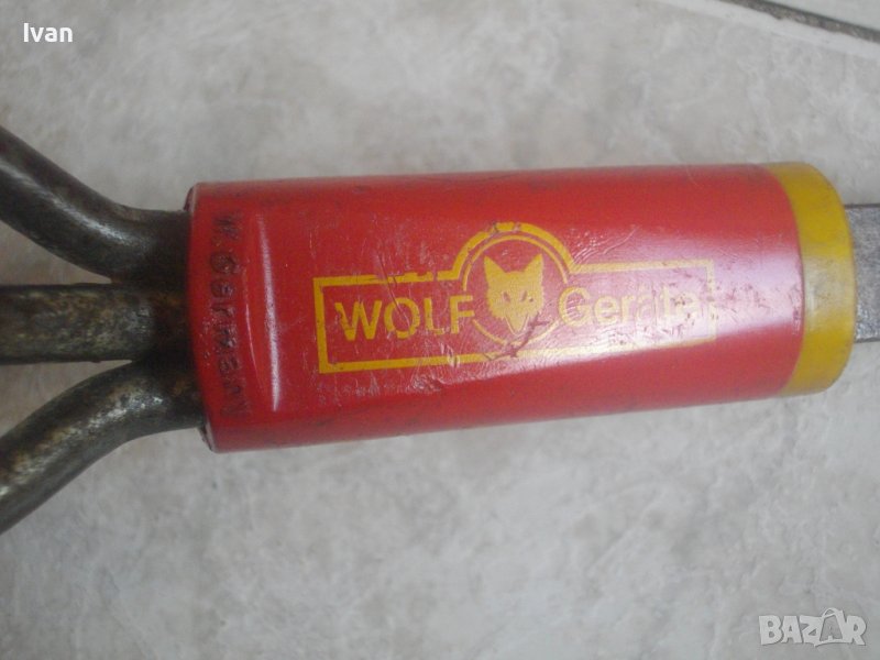 ОПИСАНИЕ на немски профи разрохвач на почва - 3 зъба-масивен-ФРГ - марка WOLF - 39 лв. Много масивен,висококачествен инструмент-Разрохвач-Ръчен Култиватор.Инструмента е професионално старо качествено немско производство на марката Уолф-Западна Германия.Марка и модел-Wolf Gerate Multi-ZM-A14-W.Germany.Много запазен външен вид и отлично техническо състояние.Масивна дебела неогъваща се стомана на работната част за разрохване.Брой зъби-3,с ромбовидни крайща за разрохване с дължина-40мм.Инструмента е с твърда бакелитова дръжка за захват на ръката и метално продължение с прорез за захват към удължителна тръба или дървена дръжка.Дълбочина работна на зъбите-90мм.Цялостна дължина на инструмента-300мм.