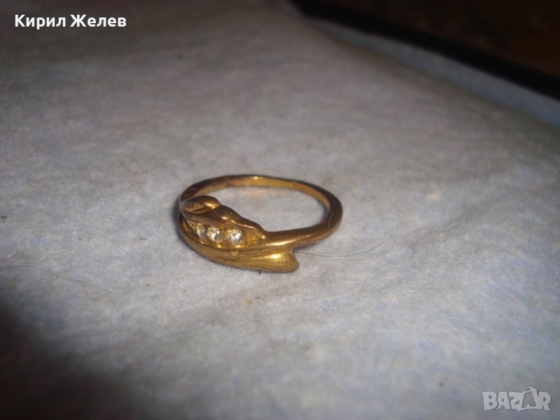 ДОСТА СТАР МЕДЕН РЕТРО АРТ ПРЪСТЕН с ПОЗЛАТА и ФАСЕТ ЦИРКОНИ МАЙСТОРСКА ИЗРАБОТКА 27592