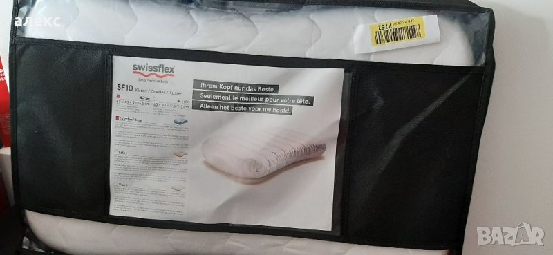 100% памук ,Gomtex ядро/ Калъфката се сваля и пере на до 40°C марка swissflex.Чисто нова.Поддържаща възглавница за врата