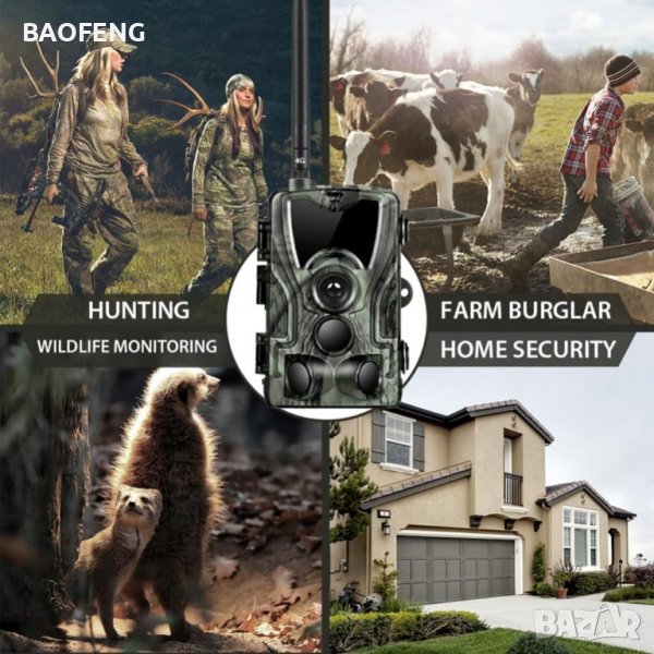 Камерата е снабдена с 4G модул за изпращане на снимки на вашия телефон, таблет или компютър. Има 36 бр. ЛЕД инфрачервени диода (незабележими за окото).