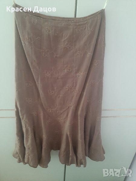 Дамска пола с подплата и цип отстрани на КАРИНА-Русе ,номер 48, фин памук с бродерия.много елегантна крайна, която прави фигурата по-вталена от действителност.в ханша е вталена, а надолу разкроена.