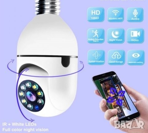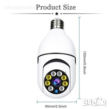 Куполна камера тип крушка с ъгъл на видимост 360° и вграден микрофон. Може да се използва за скрито видеонаблюдение, наблюдение на персонала, контрол на клиентите в търговски обекти, контрол на качеството на обслужване. Камерата може да се завърти на 355 градуса хоризонтално и да се завърти на 90 градуса вертикално. Работи в дневен и нощен режим. Aвтоматично включване в нощен режим или ръчно чрез мобилното приложение: YCC365Plus, което е налично за iPhone и Android. Изключително лесен монтаж. Вграден микрофон с висока чувствителност и говорител за двупосочна аудио връзка.