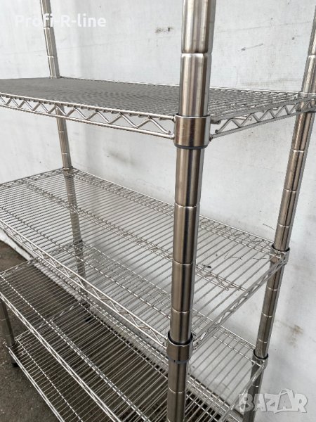 стелаж от неръждаема стомана с 4 перфорирани рафта- стелаж за кухни, складове, хладилни камери и др.