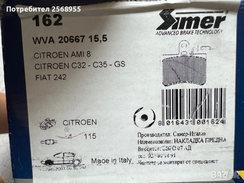 SIMER 162 Предни накладки CITROЕN C35 / FIAT 242 / 1973-1994 OE 95600561 OE 5423521 OE 75530830     , снимка 1 - Части - 37523759 SIMER 162 Предни накладки CITROЕN C35 / FIAT 242 / 1973-1994 OE 95600561 OE 5423521 OE 75530830     , снимка 2 - Части - 37523759 SIMER 162 Предни накладки CITROЕN C35 / FIAT 242 / 1973-1994 OE 95600561 OE 5423521 OE 75530830     , снимка 3 - Части - 37523759 SIMER 162 Предни накладки CITROЕN C35 / FIAT 242 / 1973-1994 OE 95600561 OE 5423521 OE 75530830     , снимка 4 - Части - 37523759 1/4