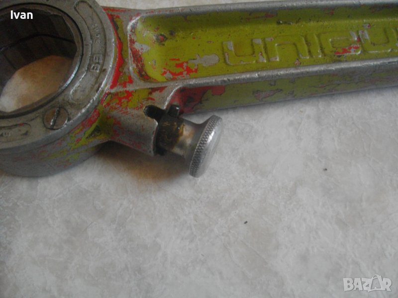 Заключващ механизъм на държача - отлично състояние. Главата държач е универсална, съвместима с много други марки глави за ръчни винтонарезки