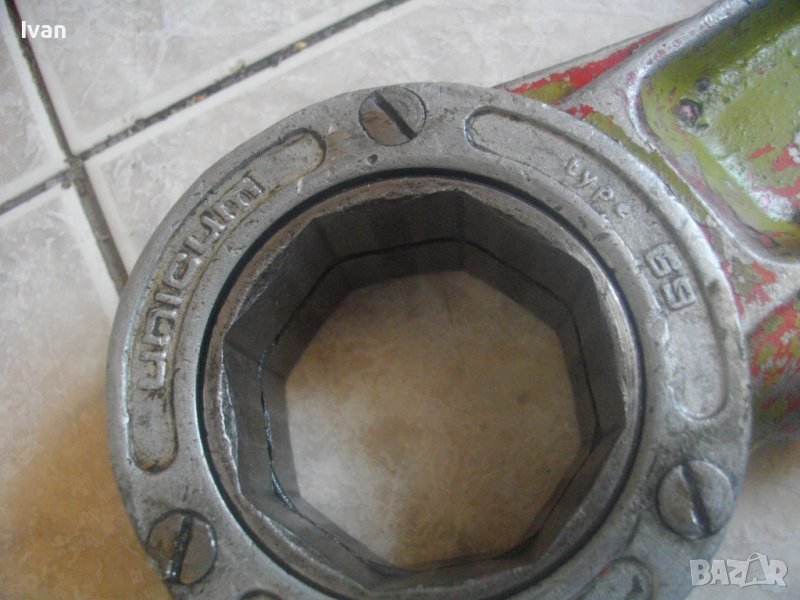 Цялостна дължина на рамото в разпънато състояние - 620 мм. Разглобява се дръжката на две части с резба. Дръжка - масивна куха тръба. Глава поставена в държача - размер 3/4 - със зъби - отлично състояние. Други глави - размер размер 1/2 цол, размер 1 цол, размер 1 1/4 цол. Всички глави са в ОТЛИЧНО техническо/работно състояние, без никакви наранявания на винторезните зъби на резбите.