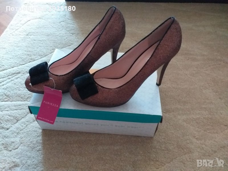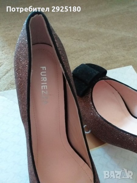 Страхотни обувки на висок ток Furiezza номер 39 . Лъскав ефект. Елегантна визия . Официални , уникални . Височина на тока 10 см. Дължина на стелката 25 см.