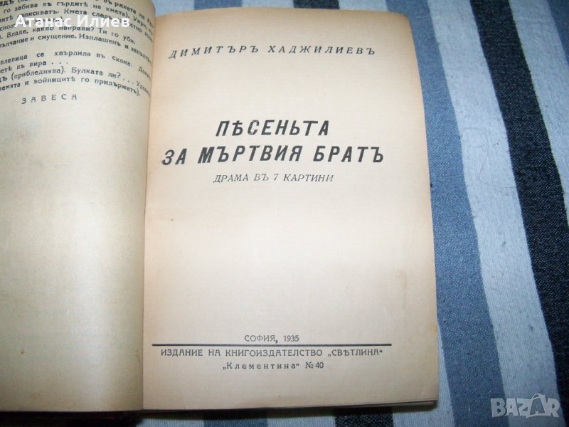 3. "Песента на мъртвия брат" драма в седем картини от Димитър Хаджилиев, издателство "Светлина" 1935г., 70 стр.