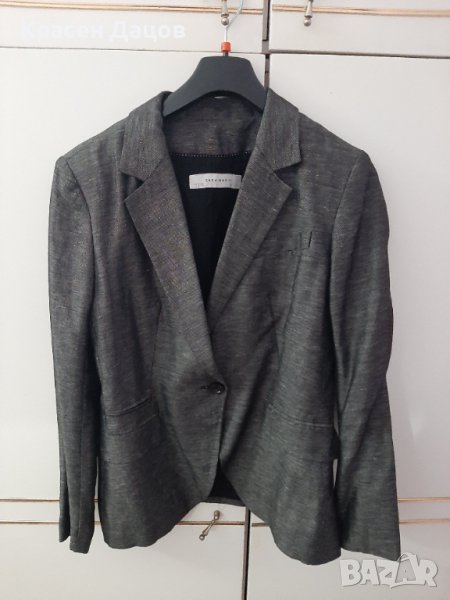 Спотно-елегантно сако на Zara, отпред заоблено и с 1 копче, отзад е със застъпена цепка.много мека памучна материя.няма забележки, малко е носено. Идеално пасва и с дънки и с панталон.