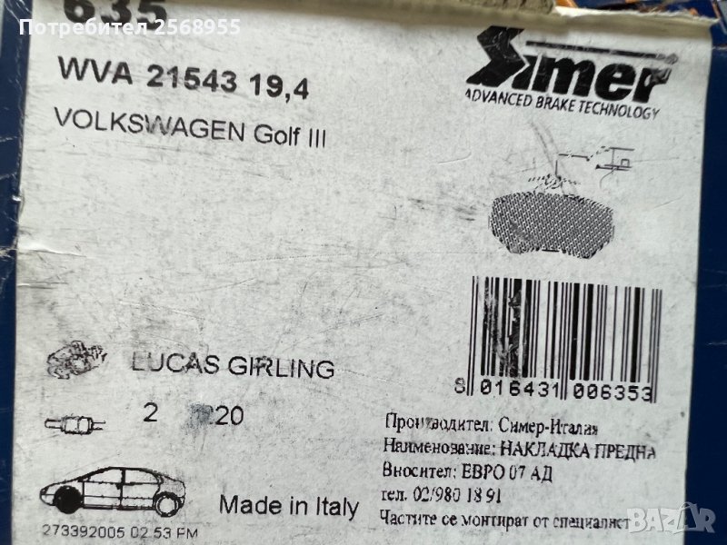 SIMER 635 Предни накладки VW Golf, Vento / AUDI 80 B3 B4 1986-1999 OE 357698151C OE 8A0698151, снимка 1 - Части - 37533146 SIMER 635 Предни накладки VW Golf, Vento / AUDI 80 B3 B4 1986-1999 OE 357698151C OE 8A0698151, снимка 2 - Части - 37533146 SIMER 635 Предни накладки VW Golf, Vento / AUDI 80 B3 B4 1986-1999 OE 357698151C OE 8A0698151, снимка 3 - Части - 37533146 SIMER 635 Предни накладки VW Golf, Vento / AUDI 80 B3 B4 1986-1999 OE 357698151C OE 8A0698151, снимка 4 - Части - 37533146 1/4