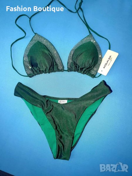 Бански костюм в зелено с камъни, внос от Италия, с ластични връзки.