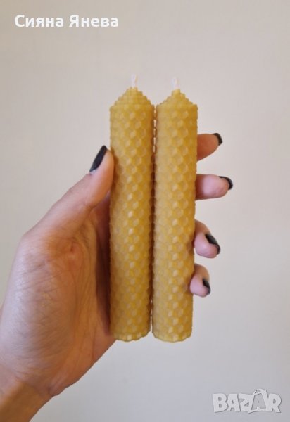 💛Ръчно направени восъчни свещи, от пчелни восъчни листи. Фитилът е 100 процента памук. Питата е излята и направена ръчно от мен, а восъкът е от баща ми, който е био пчелар. Естествени и красиви. Не димят, нямат лош аромат, а само прекрасна нотка на истински мед и восък. Дейстават за успокоение, пречистване на въздуха, защита, хармония, катализиране на желания, повдигане на тонуса и уют в дома. Повечето свещи на пазара са от парафин, който е изключително вреден за вдишване, а тези са напълно пчелни и натурални, което още повече усилва тяхната енергия. Едва след поръчка се изработват специално за вас. 💛