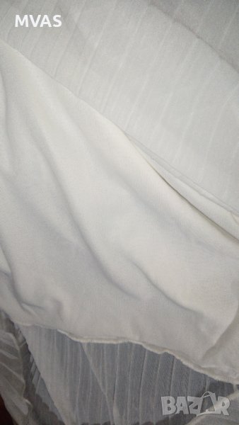 Бяла, с плисиран воал. Отзад воалът е дълъг, отпред е като къса пола. Има памучен бял хастар отдолу. С ластичен черен колан отгоре.