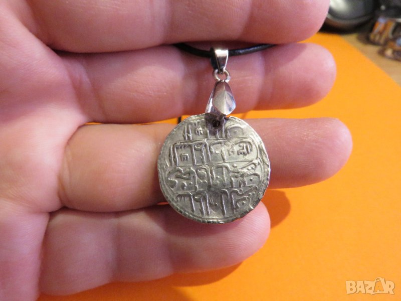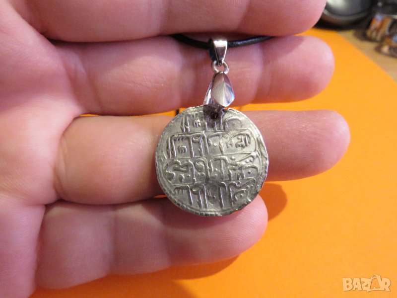 Старинна сребърна османска муска , турски амулет с Tughra 2,3см - османска монограма, накит, амулет с вързанка за врат - за колекционери и ценители .