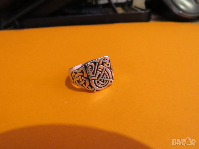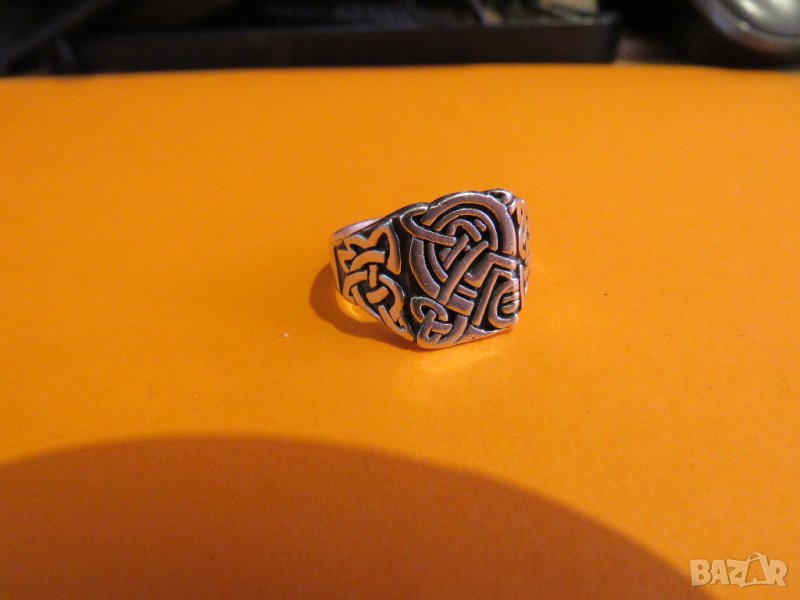 Старинен Мъжки сребърен пръстен орнаменти викингски възел - символът на вечноста. сребро