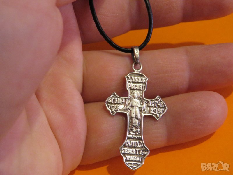 Старинен сребърен православен кръст с Исус , на гърба Архангел Михайл и надписи - притежавайте този медальон и нека божията сила ви пази и закриля