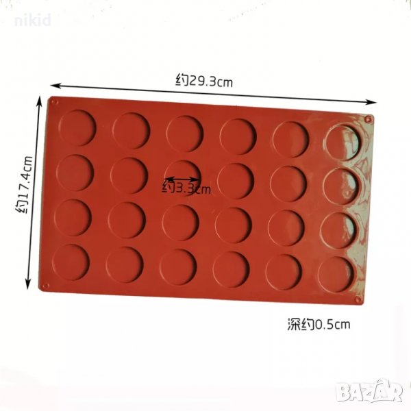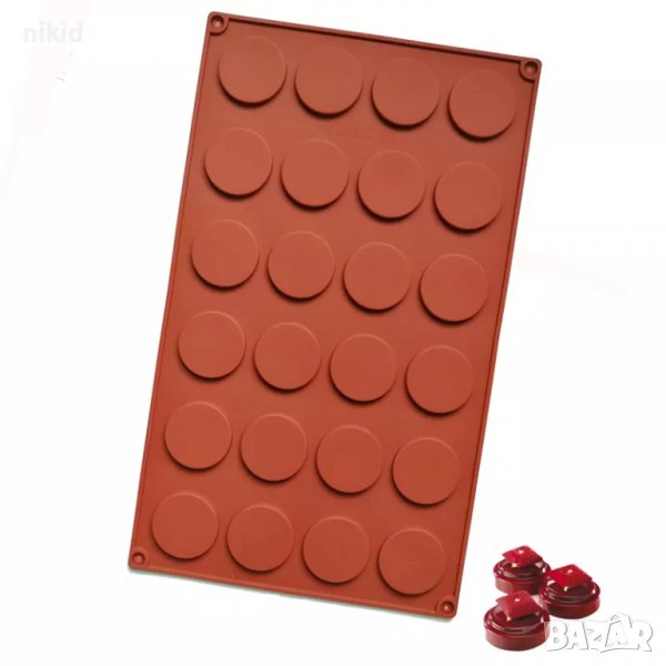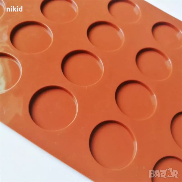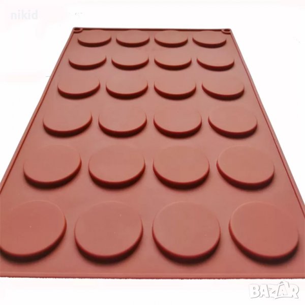24 малки плоски кръгчета кръга макарон шайби чипс силиконов молд форма подложка фондан шоколад → Обява 37537213