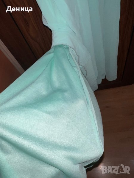 Роклята я облякох за сватба веднъж. Купувана е от Пловдив за 180лв. Удобна е, еластична. Цвят мента. С размер,но според мен става и за М. 123см е дължина от подмишница до долу. С подплата е. Става за различни поводи сватби,кръщенета.