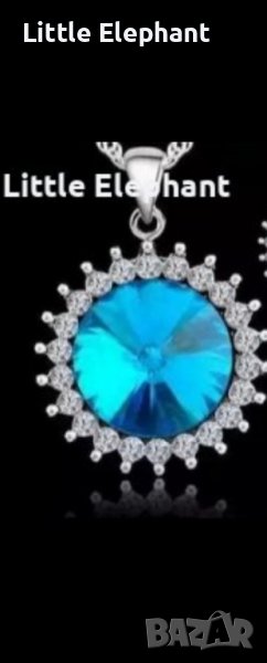 Sale Сребърно колие с ланче с кристали"Blue Sun"/ново → Обява 37543952