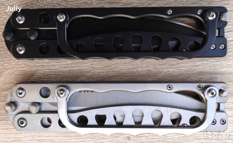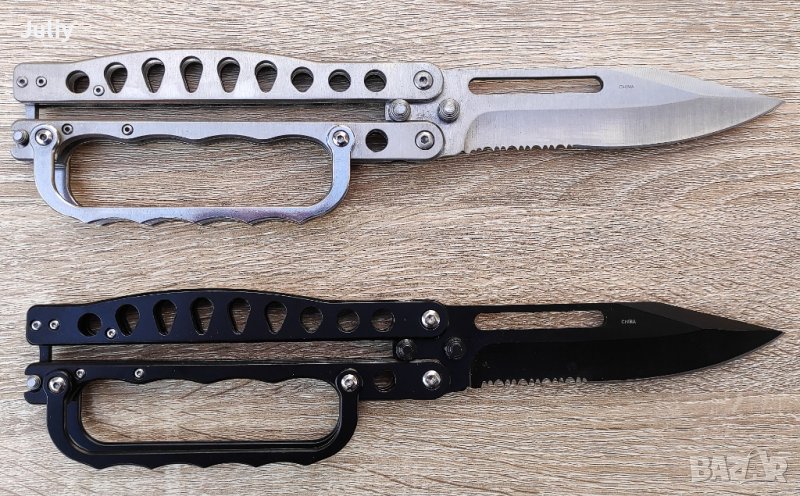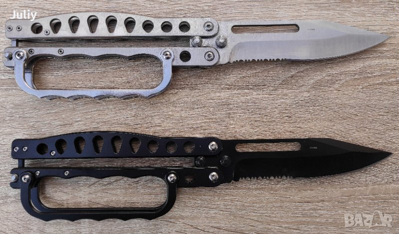Ножа е тип пеперуда и има предпазител за пръстите.