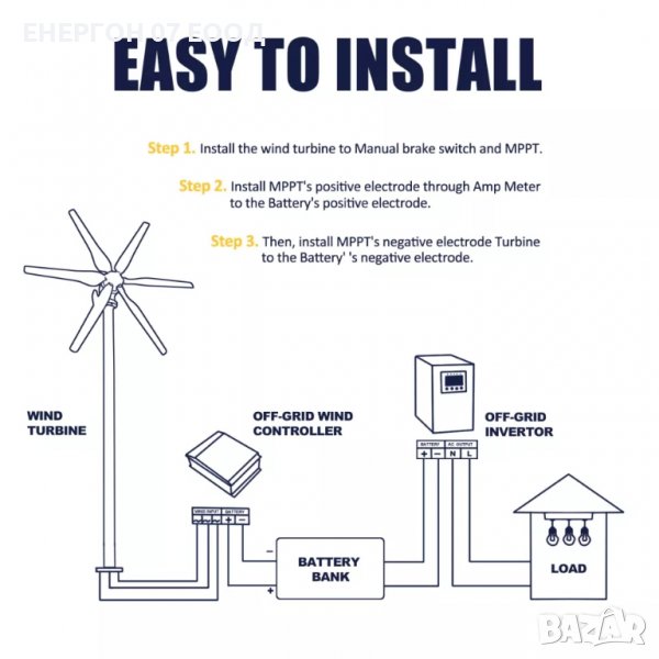 Ветрогенератор чисто нов НЕОТВАРЯН! 1000w 24v с МППТ контролер! С вграден регулатор MPPT + изправител- директно изкарва 24 волта прав ток!