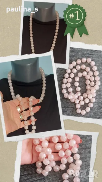 4️⃣ . Колаж / Цената е крайна 7 евро. Винтидж гердан с розови мъниста като розов кварц, но са имитационна бижутерия. На живо е хипнотично красив и приковаващ погледите. Дължина 75см.