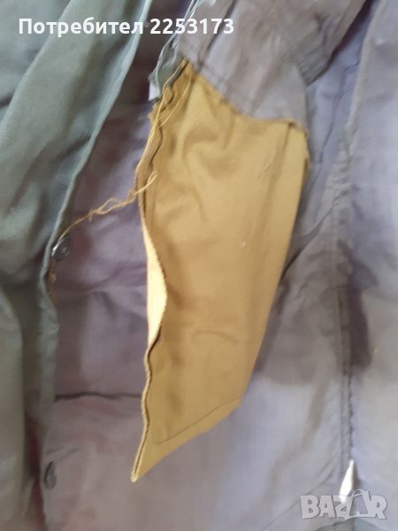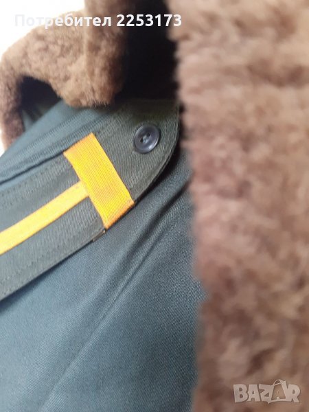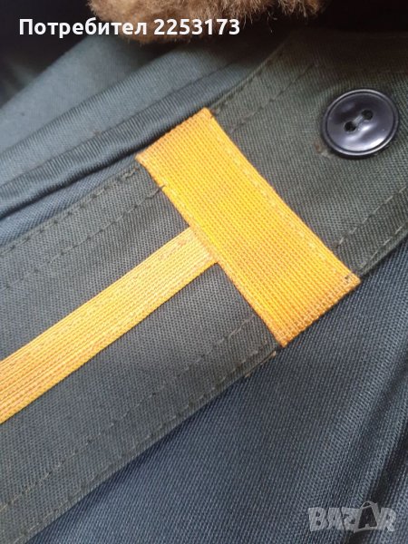 Зелен хлъзгава брезент с вълнена яка от пожарна или,,Гранични,,Пагони на Старшина.Подходяща за.колекция,декор,лов,риболов и др.ЕТИКЕТ50-2.кр.